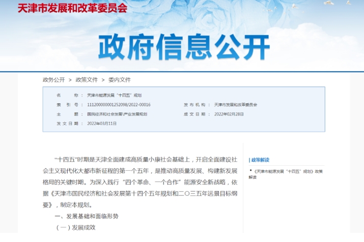 2020年,天津市以煤炭為主的能源結構逐漸向多元化、清潔化方向轉變,非化石能源占比由2.7%提高到7.7%。123萬(wàn)戶(hù)農村居民清潔取暖改造完成。