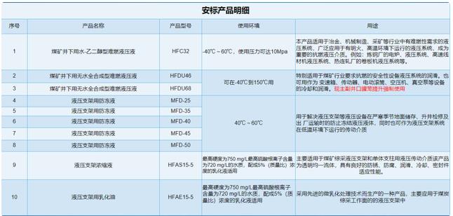 我公司獲得安標國家礦用產(chǎn)品安全標志中心頒發(fā)的HFDU-46 煤礦井下用無(wú)水全合成型難燃液壓液、HFDU-68 煤礦井下用無(wú)水全合成型難燃液壓液、MFD-25液壓支架用防凍液、MFD-35液壓支架用防凍液、MFD-40液壓支架用防凍液、MFD-45液壓支架用防凍液、MFD-50液壓支架用防凍液、HFAS15-5液壓支架用濃縮液、HFC32煤礦井下用水-乙二醇型難燃液壓液、HFAE15-5液壓支架用乳化油等十項安標證書(shū)。