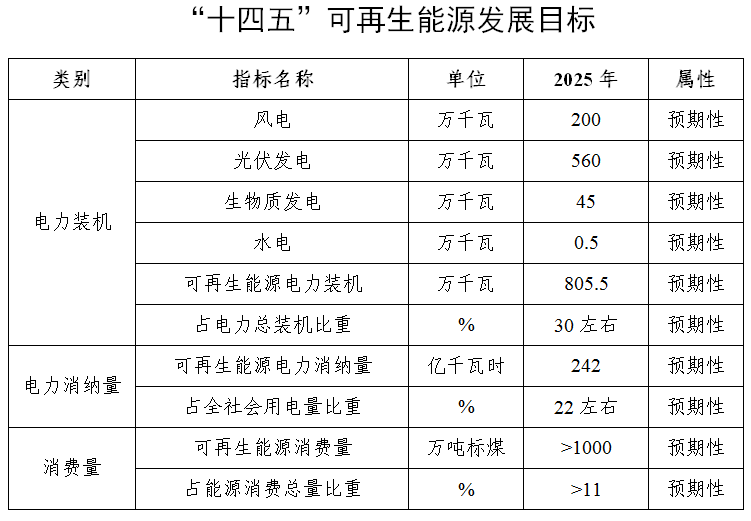 “十四五”主要可再生能源品種發(fā)展目標如下: