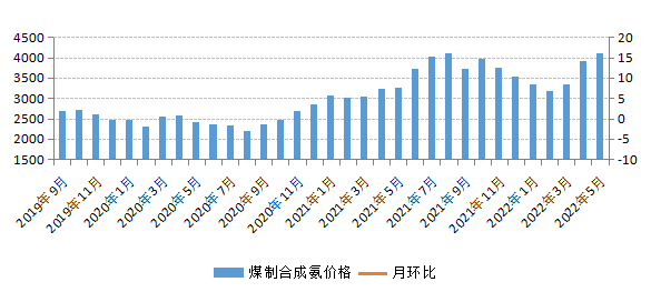 5月份,合成氨市場(chǎng)迎來(lái)需求旺季,下游企業(yè)備貨積極,訂單量繼續增加,煤制合成氨市場(chǎng)供應偏緊,價(jià)格延續前期小幅上漲走勢。5月份,煤制合成氨平均交易價(jià)格為4108.36元/噸,環(huán)比上漲5.06%,同比上漲26.35%。