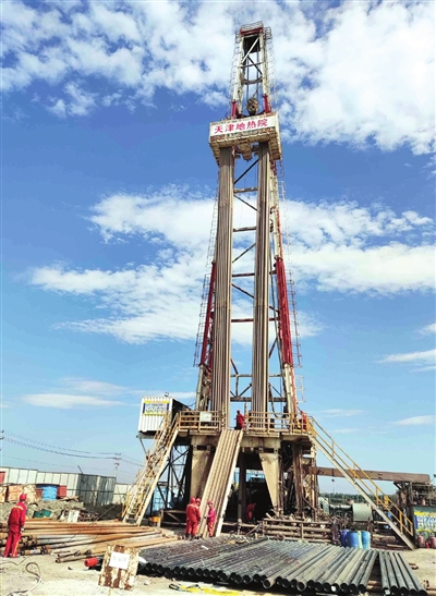 近日,記者從市區出發(fā)向東沿著(zhù)津寧高速,不過(guò)半個(gè)小時(shí)車(chē)程,來(lái)到寧河區北淮淀示范鎮建設現場(chǎng)。遠遠看到示范鎮一期安置房北側的空地上,一座50多米高的鉆井架聳立在藍天下,懸吊在井架上的鉆桿正旋轉著(zhù)向地下挺進(jìn)。