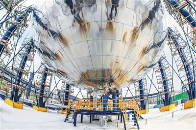 齊魯石化第二化肥廠(chǎng)氣體聯(lián)合車(chē)間員工正在調控4000立方米二氧化碳球罐達到最佳工作狀態(tài)。