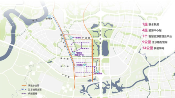 據介紹,天府總部商務(wù)區西區集中供能項目位于天府公園西側,北起飛燕橫街,南至廣州路,西起益州大道,東至雅州路。項目規劃面積約2.76平方公里,總投資約8.5億元,總建筑規模約459.58萬(wàn)平方米,總供能面積370.88萬(wàn)平方米,采用“水源熱泵(江水)+冷水機組+熱源塔熱泵+蓄能”系統供冷供熱,實(shí)現了供能系統冷熱源端100%電氣化,無(wú)任何化石能源燃燒及污染物排放。