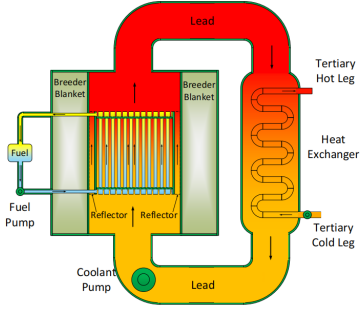 燃料流速緩慢,可以達到最佳燃耗率;冷卻劑高速循環(huán),可以使傳熱速度最佳。因此,可以讓高濃度的液態(tài)燃料(錒系金屬元素混合物)在耐高溫、抗腐蝕的管束內緩慢流動(dòng),顯著(zhù)增加堆芯內可裂變材料的數量。堆芯緊湊,所需結構材料的數量少,就可使用昂貴、耐高溫、耐腐蝕的結構材料。使用液態(tài)鉛做冷卻劑,也可不降低堆芯中子速度(能量)地傳輸熱能。