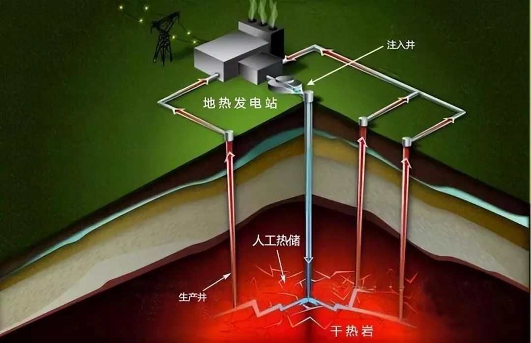 干熱巖屬于高溫地熱資源,是指埋藏一定深度的巖石溫度≥180℃,且無(wú)流體存在或少量流體的巖體。干熱巖地熱資源具有熱量大、能量高、穩定、可靠、安全、持續等特點(diǎn),主要用于發(fā)電和供暖,其能源利用率是風(fēng)能的4倍、太陽(yáng)能的7.7倍。