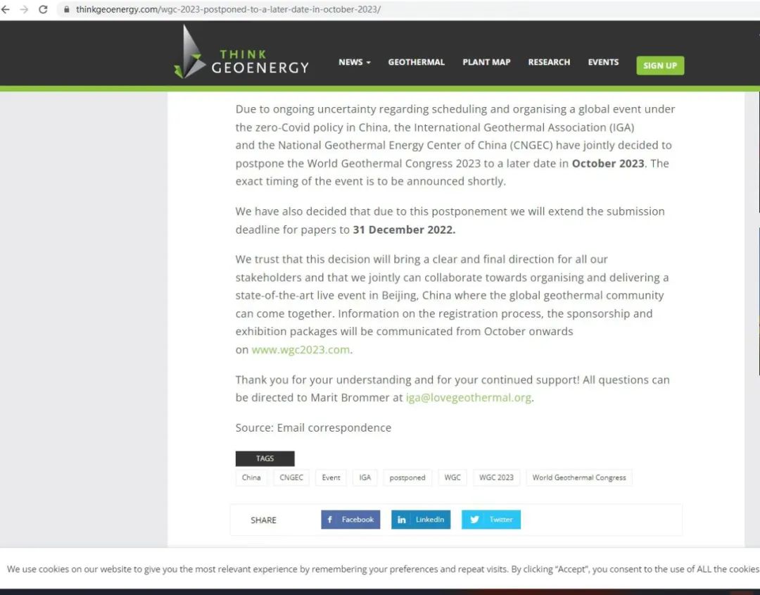 國際地熱協(xié)會(huì )官網(wǎng)通知截圖