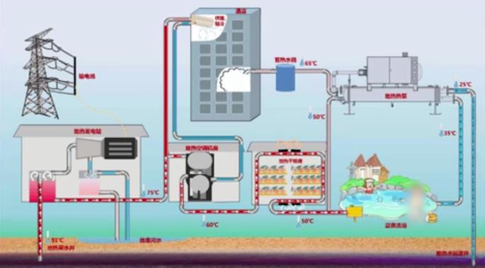 依據地熱能溫度的分級,高于200攝氏度的地熱資源可以用來(lái)進(jìn)行發(fā)電或梯級綜合利用。100-200攝氏度的地熱資源可以用于雙循環(huán)發(fā)電,吸收式制冷直接供熱,或是工業(yè)干燥及熱加工等。50-100攝氏度的地熱資源可用于直接供暖和供生活熱水,或進(jìn)行工業(yè)干燥。20-50攝氏度的地熱資源主要就用于工業(yè)生活熱水,溫泉洗浴、醫療康養、農業(yè)種植、水產(chǎn)養殖、包括為建筑物的供冷供熱。