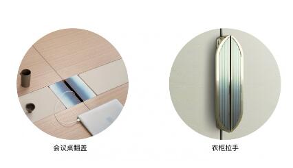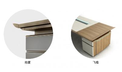 “御之和”極大程度突破傳統造型。靈感來(lái)自京外名剎之首的河北正定“隆興寺”獨特的“四出山花抱廈”建筑結構特色,如四周墻面凸出成圍抱主體之勢,震旦家具取“抱廈”格局于主管桌,更包含禮遇上賓之意。