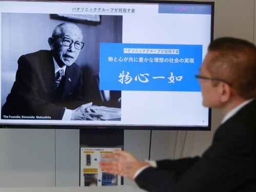 足立真治:我們松下集團由多個(gè)領(lǐng)域的企業(yè)組成,其出發(fā)點(diǎn)是創(chuàng )始人松下幸之助“物心如一”的理念——當物質(zhì)與心靈獲得雙重滿(mǎn)足,世界就會(huì )變得更美好,大家就會(huì )變得更幸福。創(chuàng )始人很早之前就提出了這一理念,我們松下集團也一直遵循這一理念,直到今天。