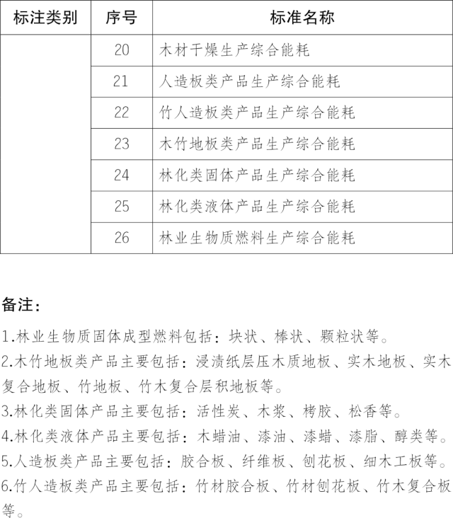 主要規定了木材生產(chǎn)及板材加工、木材干燥、人造板類(lèi)、木竹地板類(lèi)、林化類(lèi)產(chǎn)品、林業(yè)生物質(zhì)燃料生產(chǎn)綜合能耗等標準。