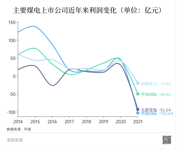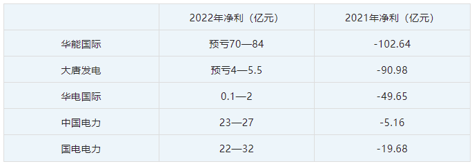 五大電力是我國煤電企業(yè)的主力軍和風(fēng)向標。華能?chē)H業(yè)績(jì)預告顯示,預計2022年歸母凈利潤虧損為70億到84億。同為老牌翹楚的大唐發(fā)電,預計2022年歸母凈利潤約為-4.0至-5.5 億元。對于虧損原因,兩家公司均表示,“燃料成本持續高位運行”“利好因素無(wú)法覆蓋燃料成本增加”等。