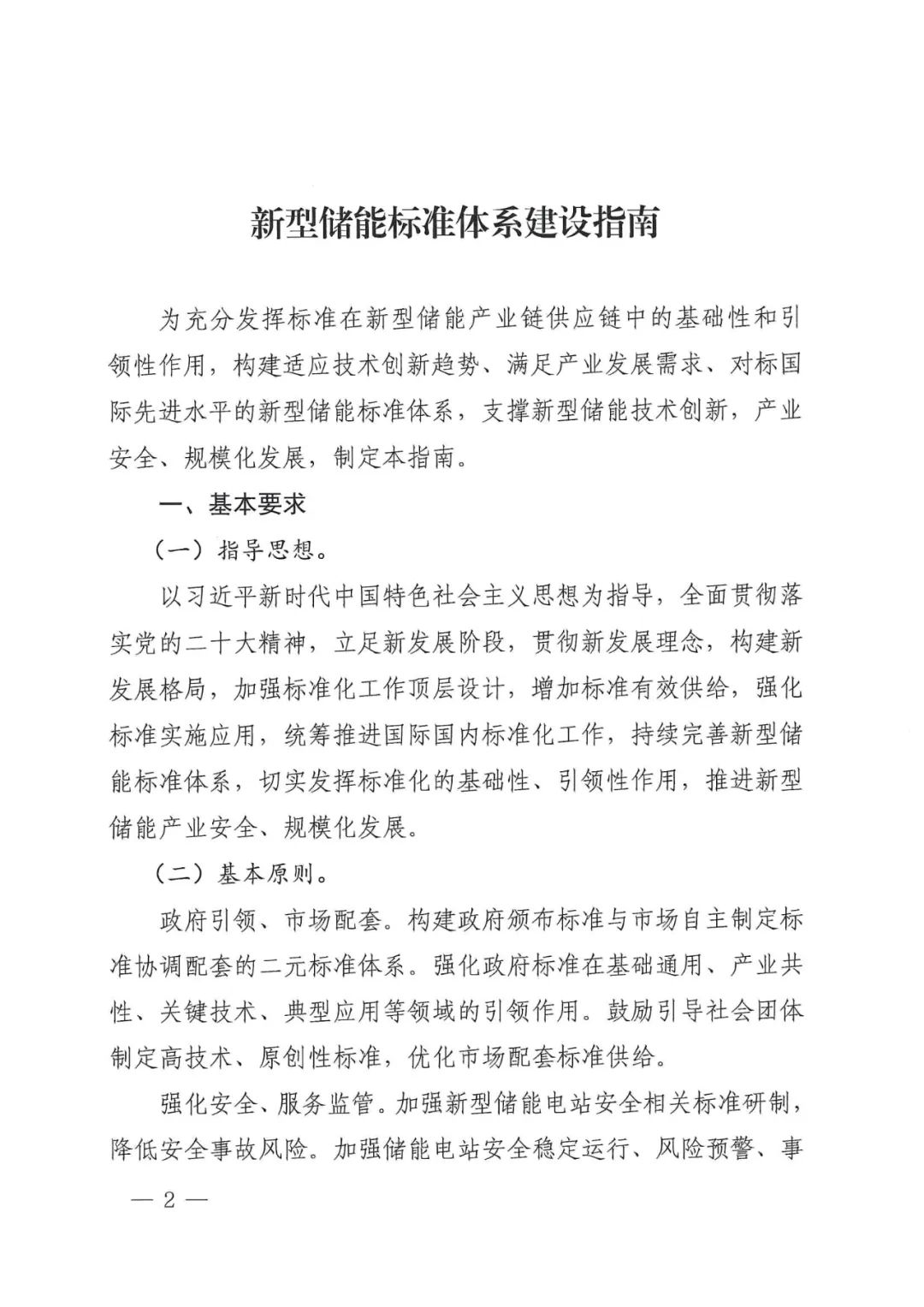 通知和《新型儲能標準體系建設指南》原文如下。