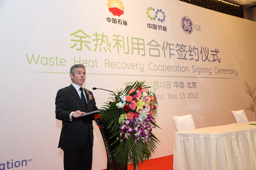 中國節能董事長(cháng)王小康說(shuō):,“中國節能是我國節能環(huán)保領(lǐng)域最大的科技型服務(wù)型產(chǎn)業(yè)集團。作為中央政府投資的唯一一家以節能環(huán)保為主業(yè)的企業(yè),我們一直致力于為能源重化型工業(yè)企業(yè)提供節能減排整體解決方案,在國內投資、建設、運營(yíng)了數十個(gè)余熱利用項目,是法國拉法基、中國建材、中國南車(chē)、中化集團、新興際華等世界五百強企業(yè)的戰略合作伙伴。以今天的簽約為起點(diǎn),我們將很榮幸地牽手GE和中石油,從”西氣東輸“加壓站余熱利用開(kāi)始,進(jìn)入石油石化節能減排這個(gè)新領(lǐng)域。這不僅預示著(zhù)我國將成功引進(jìn)世界上最先進(jìn)的余熱利用技術(shù),還標志著(zhù)石油石化領(lǐng)域節能減排工作取得了全新進(jìn)展。”