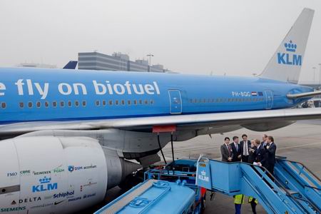 當地時(shí)間下午1:30,荷蘭皇家航空公司啟動(dòng)了從阿姆斯特丹到紐約的生物燃料航班,該客機所使用的生物燃料是以使用過(guò)的餐廚用油,即國內俗稱(chēng)的“地溝油”為原料提煉加工而成。新華社發(fā)