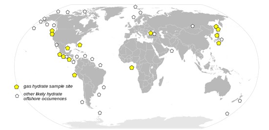 圖1:全球可燃冰分布圖