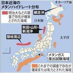 (1996年美國地質(zhì)調查所調查,顯示日本儲量豐富。該圖未標示我國蘊藏地區)