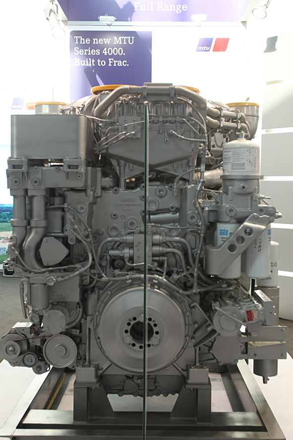 MTU 4000型發(fā)動(dòng)機是我們最受歡迎的產(chǎn)品之一。自1996年以來(lái),該系列發(fā)動(dòng)機累計售出超過(guò)26,000臺。MTU4000型發(fā)動(dòng)機在石油天然氣行業(yè)主要用于油井開(kāi)發(fā)和增產(chǎn)的水力壓裂設備。使用該系列柴油發(fā)動(dòng)機的壓裂設備可以以4臺到50臺組合完成壓裂蘊含石油和天然氣的巖層。MTU 4000 T4型結合MTU自身具備的柴油科技、通過(guò)MTU第五代高壓共軌燃油噴射技術(shù)和兩級渦輪增壓器(具有可調高壓段以及廢氣循環(huán)系統)、無(wú)需增加后處理和相關(guān)設置 ,就可以實(shí)現超低顆粒和氧化氮的排放。簡(jiǎn)單來(lái)說(shuō),新一代MTU 4000型發(fā)動(dòng)機僅用發(fā)動(dòng)機本身設計性能就可以實(shí)現低污染物排放。應用戶(hù)市場(chǎng)的要求,上一代MTU 4000型發(fā)動(dòng)機依然會(huì )繼續生產(chǎn)銷(xiāo)售。