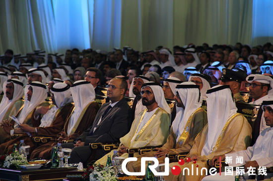 迪拜酋長(cháng)馬克圖姆(右六)、利比亞副總理巴拉希(右五)等出席開(kāi)幕式。