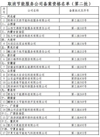 根據《財政部國家發(fā)展改革委關(guān)于印發(fā)<合同能源管理財政獎勵資金管理暫行辦法>的通知》(財建[2010]249號)有關(guān)規定,現將造假節能服務(wù)公司名單予以公告,取消其備案資格,并收回這些節能服務(wù)公司所有合同能源管理項目獎勵資金。