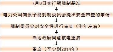 但根據核電重啟的程序,核電重啟預計最早可能也要到2014年。日本核電重啟程序如下圖所示。