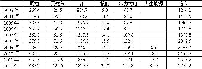 由于進(jìn)口天然氣,中國的天然氣消費也再逐年增加,2012年天然氣在一次能源消費中已經(jīng)到4.7%。