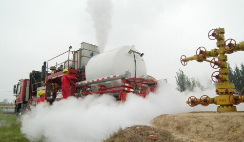 據該處副經(jīng)理趙社強介紹,液氮誘噴技術(shù)主要利用液氮在井筒內氣化原理,氣化后的氮氣體積大幅膨脹,從而有效排出井內液體,實(shí)現氣井誘噴投產(chǎn)。該技術(shù)具有安全、環(huán)保、施工快捷和對氣層無(wú)污染等優(yōu)點(diǎn),受到油氣生產(chǎn)單位的歡迎。