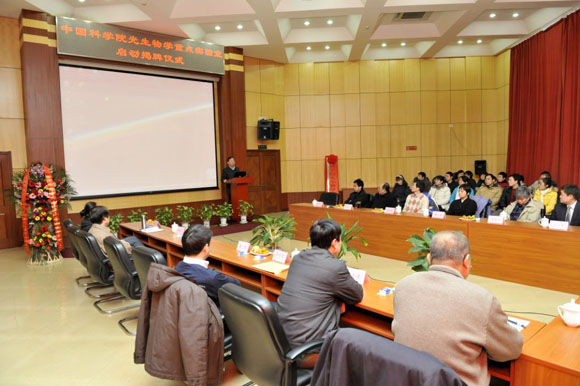 2010年1月13日上午,中國科學(xué)院光生物學(xué)重點(diǎn)實(shí)驗室成立暨揭牌儀式在植物所多功能廳舉行,所長(cháng)馬克平、黨委副書(shū)記牛喜平、匡廷云院士、所長(cháng)助理洪亮、李云峰、職能部門(mén)負責人及相關(guān)科研人員參加了揭牌儀式。揭牌儀式由牛喜平主持,所長(cháng)馬克平和匡廷云院士為光生物學(xué)重點(diǎn)實(shí)驗室揭牌,副所長(cháng)種康為成立儀式發(fā)來(lái)賀信。