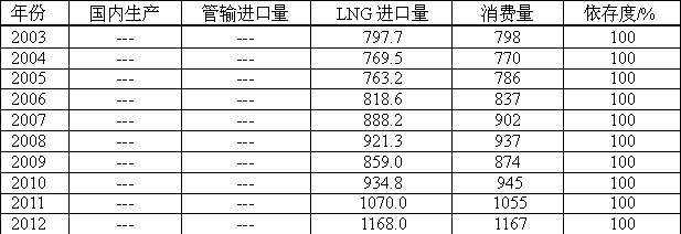 日本天然氣均為液化天然氣進(jìn)口,依存度一直保持在100%;