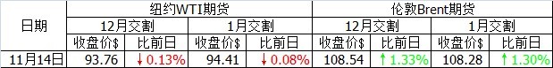 美國能源信息署當日公布的截至11月8日的原油庫存比前一周增加260萬(wàn)桶,大幅超過(guò)路透社之前增加100萬(wàn)桶的預計。受這一利空影響,雖然有耶倫表態(tài)的積極支撐,但紐約WTI油價(jià)最終收跌。