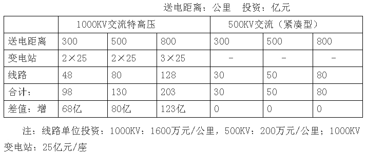 在不考慮1000KV輸電所需要500KV配套投資的前提條件,500KV級電壓在經(jīng)濟上占絕對優(yōu)勢。500-700公里短距離輸電,1000KV級電壓又必然被500KV級電壓所淘汰。