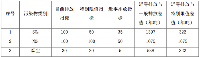 表1 "近零排放"與一般排放指標、特別限值排放指標污染物排出情況對比表