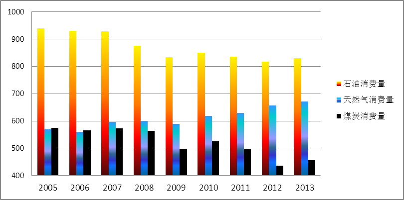 快速增長(cháng)的頁(yè)巖氣供應能力不僅替代了煤炭,也替代了石油。從2005年到2013年,美國新增天然氣消費量1.024億噸標準油當量,折合1138億立方米,同時(shí)減少煤炭1.185億噸標準油當量的煤炭,折合5000大卡原煤2.37億噸;減少石油消費量1.088億噸(見(jiàn)圖5);靠天然氣的靈活性成功地新接納了168TWh的可再生能源;二氧化碳排放量從64.94億噸,下降到59.31億噸,下降了5.626億噸,使奧巴馬有了在2025年下降16.23億噸,比2005年下降25%的底氣。