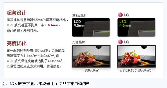 LG此次為北京地鐵7號線(xiàn)量身打造的顯示解決方案中,采用42、55英寸的LGWS10系列商用顯示器42WS10和55WS10,屏幕深度僅為4.6mm,超薄機身有效節省地鐵的安裝空間。該系列采用LG獨有的IPS硬屏技術(shù),178°的超廣可視角讓乘客從幾乎能從任意角度及時(shí)獲知地鐵班次等信息。IPS硬屏還擁有超強色彩還原能力的畫(huà)面顯示和清晰流暢、無(wú)閃爍和無(wú)拖尾動(dòng)態(tài)圖像切換的特點(diǎn)。雖然北京地鐵每天都承載巨大的人流量,但是LGWS10系列商用顯示器提供及時(shí)準確的信息顯示將為乘客出行帶來(lái)極大便利,并有效提高出行效率。此外,高度優(yōu)化的顯示技術(shù)支持WS10系列最低亮度僅為450cd/㎡,確保用戶(hù)獲得信息的視覺(jué)感受是最舒適的。