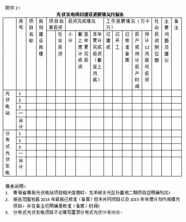 光伏發(fā)電項目建設進(jìn)展情況月報表