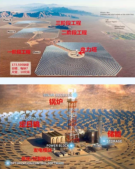 由美國B(niǎo)rightSource能源公司、NRG能源公司和Google共同參與投資的世界上最大的太陽(yáng)熱電系統“艾文帕太陽(yáng)能發(fā)電系統”(IvanpahSolarElectricGeneratingSystem,ISEGS)位于美國拉斯維加斯西南部40英里的莫哈韋沙漠,當地全年日照充分,距離輸電線(xiàn)路距離較近。ISEGS由3座太陽(yáng)熱發(fā)電廠(chǎng)組成,它的成型和運作被視為提供了能和化石燃料競爭的新能源工程樣本,是在下一代科技、創(chuàng )新、政府、企業(yè)合作之下共同形成的,可以應對氣候變化的可持續解決方案。
