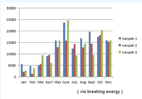 據C整合的數據:自2014年1月份投運到8月份,Ivanpah的發(fā)電量遠遠低于預期水平。其中的原因有兩個(gè):