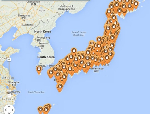 CHAdeMO快充設備分布圖