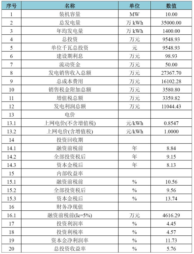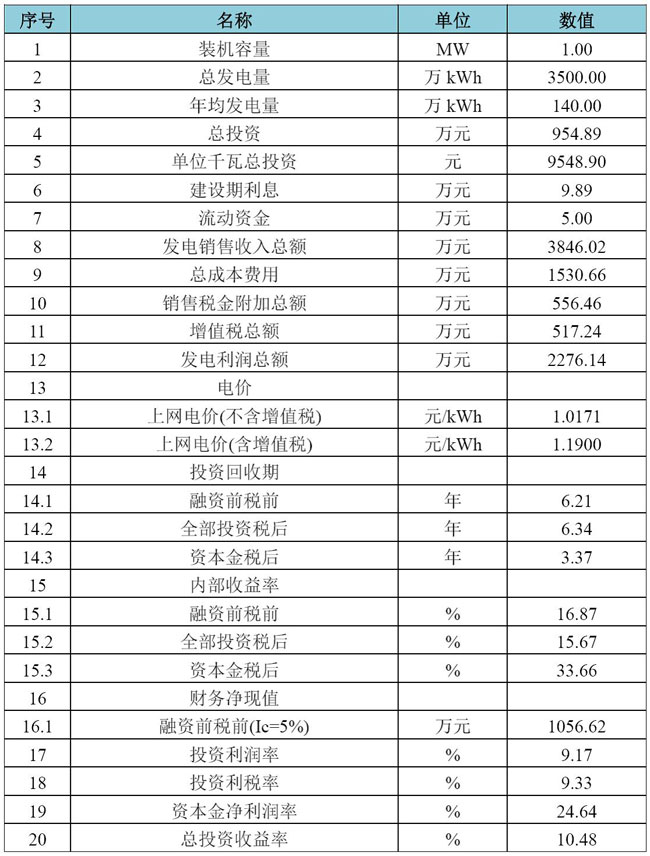 表1:Ⅲ類(lèi)資源區地面光伏電站財務(wù)指標表