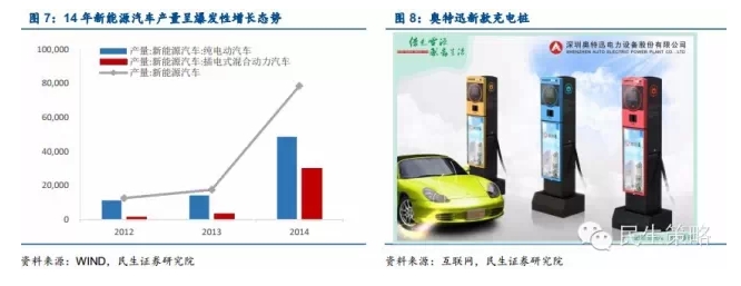 新能源汽車(chē)進(jìn)入產(chǎn)業(yè)爆發(fā)期,帶動(dòng)充電樁基礎設施建設。14年起,我國新能源汽車(chē)進(jìn)入政策蜜月期,產(chǎn)銷(xiāo)增長(cháng)顯著(zhù)。14年新能源汽車(chē)產(chǎn)量較13年增長(cháng)347.7%,其中插電式混合動(dòng)力車(chē)年增速達到808.6%,純電動(dòng)汽車(chē)增速達241.3%。電動(dòng)汽車(chē)充電樁建設作為新能源汽車(chē)不可或缺的配套產(chǎn)業(yè)將同樣迎來(lái)快速發(fā)展機遇,根據中國儲能網(wǎng)數據顯示,目前我國充電樁與新能源汽車(chē)配比為4:1,相比“一車(chē)配一樁”的標配,產(chǎn)業(yè)發(fā)展空間巨大。
