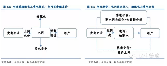 電價(jià)市場(chǎng)化改革新電改后再獲實(shí)質(zhì)推進(jìn),孕育獨立電交易平臺。自3月“新電改”方案提出電價(jià)市場(chǎng)化改革后,5月《國家能源局2015年全年市場(chǎng)監管工作要點(diǎn)》再度將電力交易市場(chǎng)化改革推上風(fēng)口浪尖。目前電改趨勢主要為電網(wǎng)輸配電與售電功能的分離,用戶(hù)和發(fā)電企業(yè)直接對接,采取協(xié)商定價(jià)或競價(jià)上網(wǎng)模式,電網(wǎng)企業(yè)僅負責輸配電并向發(fā)電企業(yè)收取核定過(guò)網(wǎng)費。當電網(wǎng)售電功能剝離后,獨立的售電平臺企業(yè)則自然而然地產(chǎn)生。