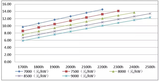 當滿(mǎn)發(fā)小時(shí)數達到2000小時(shí),則單位千瓦靜態(tài)投資不超過(guò)9000元/kW即能保障全部投資內部收益率不低于8%。