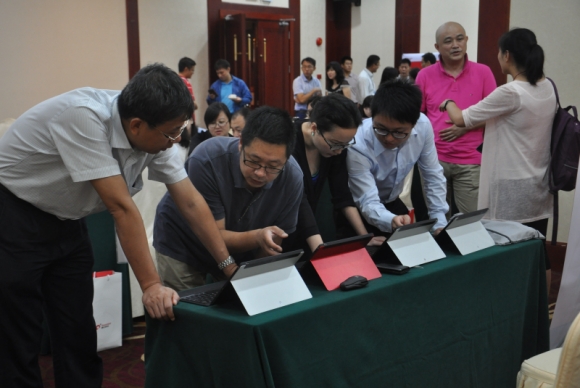 受“互聯(lián)網(wǎng)+”的趨勢影響,慧點(diǎn)科技“企業(yè)互聯(lián)網(wǎng)+管理軟件”的移動(dòng)融合應用產(chǎn)品在現場(chǎng)也備受關(guān)注,與會(huì )嘉賓們還在Demo區對慧點(diǎn)科技最新移動(dòng)應用產(chǎn)品和融合通信產(chǎn)品“慧信”進(jìn)行了互動(dòng)體驗。