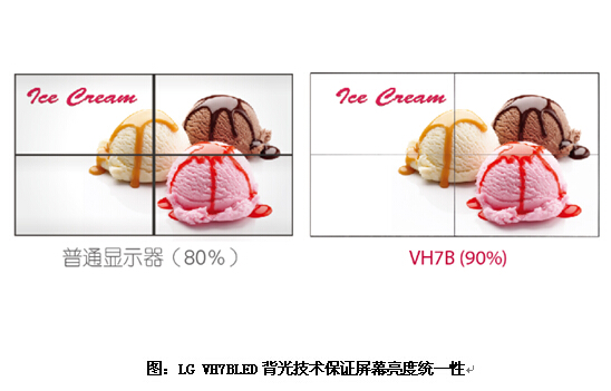 LGVH7B具有更高的亮度均勻性。顯示器亮度為700nits同時(shí)采用業(yè)內以專(zhuān)業(yè)著(zhù)稱(chēng)的IPS硬屏技術(shù)以及LED背光技術(shù),有效避免了其他顯示器出現的屏幕局部較暗的現象。LED背光技術(shù)保證了拼接屏屏幕亮度的高度統一,有效消除了任意視角時(shí)的顏色變化和失真情況,即便是在大型場(chǎng)所大規模安裝也能夠保證用戶(hù)在任意角度觀(guān)看都能獲得清晰的畫(huà)面,保持整塊拼接墻持續的亮度的統一性,為用戶(hù)帶來(lái)完美的顯示解決方案。