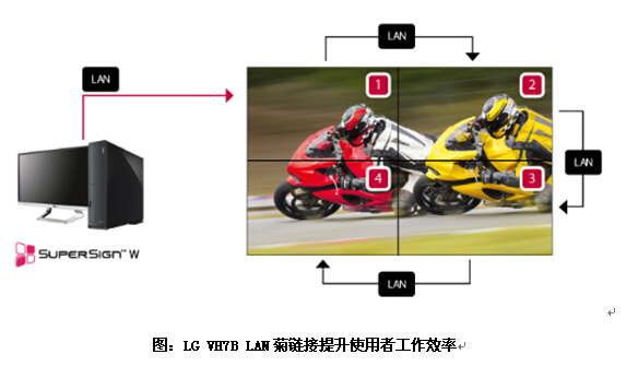 LGVH7B擁有高級的內容管理功能,用戶(hù)所發(fā)出的控制命令可以通過(guò)LAN菊花鏈構成菊花鏈網(wǎng)絡(luò )從而進(jìn)行內容發(fā)布,以執行控制、監控以及固件升級等命令,大幅提升使用者的工作效率。