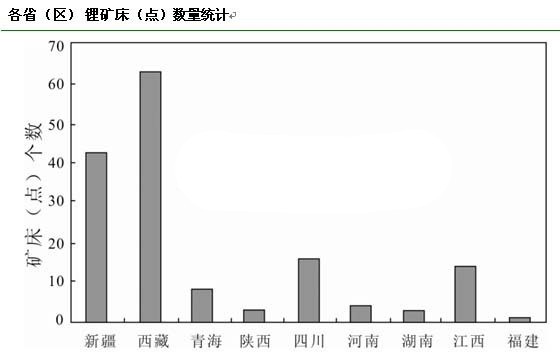 鋰礦查明金屬鋰資源儲量的各省排序圖
