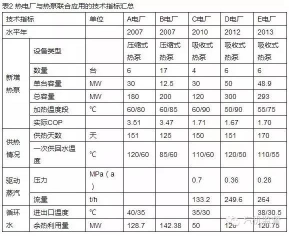 2.1熱電廠(chǎng)與熱泵聯(lián)合應用技術(shù)指標