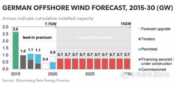 在新提議中,德國新的風(fēng)電項目仍可在2021年前享受入網(wǎng)電價(jià)溢價(jià)補貼,而在這之后,獲準風(fēng)電項目則需在2021至2024年間的轉型招投標中參與競爭;2025至2030年間的則需在新增容量集中招投標中參與競爭。