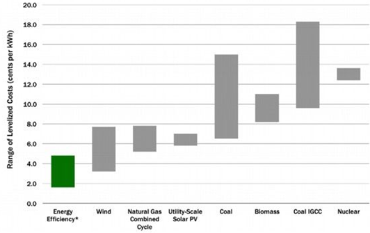 但是,能源節約是長(cháng)期有效的。勞倫斯伯克利國家實(shí)驗室(LBNL)和美國能效經(jīng)濟理事會(huì )(ACEE)的一項最新研究也證明了能效提升所需的成本更低:每千瓦時(shí)僅為4.5美分。因此若要讓電力公司實(shí)現放棄使用化石燃料、降低碳排放的目標,向用戶(hù)投資提升能效比新建太陽(yáng)能或風(fēng)能發(fā)電項目更實(shí)惠。