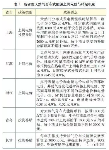 國家初步規范了天然氣分布式能源上網(wǎng)電價(jià)管理機制?!蛾P(guān)于規范天然氣發(fā)電上網(wǎng)電價(jià)管理有關(guān)問(wèn)題的通知》(發(fā)改價(jià)格〔2014〕3009號)指出,天然氣發(fā)電價(jià)格管理實(shí)行省級負責制,新投產(chǎn)天然氣熱電聯(lián)產(chǎn)發(fā)電機組實(shí)行標桿電價(jià)政策和氣電價(jià)格聯(lián)動(dòng)機制,最高上網(wǎng)電價(jià)不得超過(guò)當地煤電上網(wǎng)標桿電價(jià)或當地電網(wǎng)企業(yè)平均購電價(jià)格0.35元/kWh;有條件的地方要積極采取財政補貼、氣價(jià)優(yōu)惠等措施疏導天然氣發(fā)電價(jià)格矛盾。