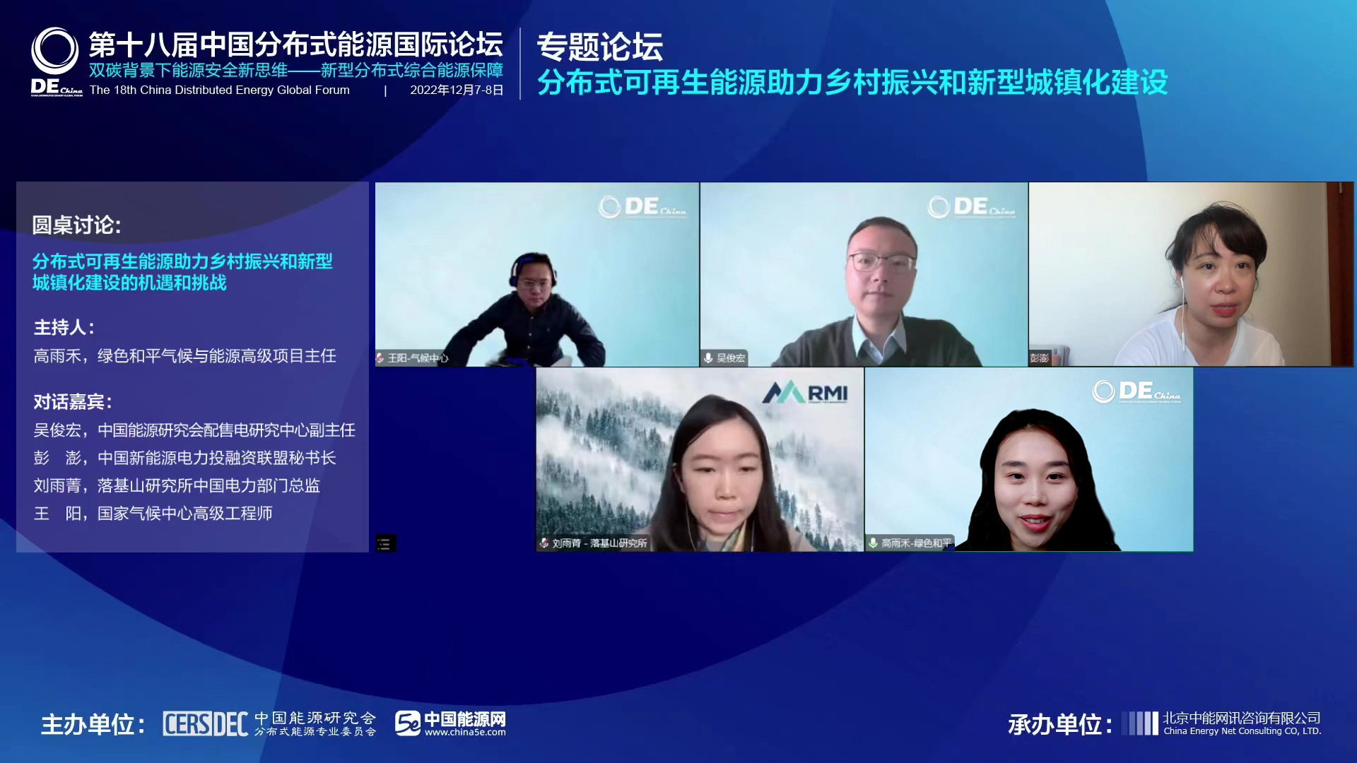 主持人 高雨禾:謝謝吳主任。今天我們非常有幸和電力和可再生能源領(lǐng)域的資深行業(yè)專(zhuān)家,大家一起從分布式可再生能源的資源稟賦,開(kāi)發(fā)利用模式,市場(chǎng)機制,投融資方式等方面深度剖析了分布式可再生能源在助力鄉村振興和新型城鎮化建設中面臨的機遇和挑戰,我們同樣堅信隨著(zhù)電力市場(chǎng)改革不斷的深入推進(jìn),城市和農村電力基礎設施的逐步完善,綠色低碳技術(shù)的迭代和升級,未來(lái)分布式可再生能源一定會(huì )擁有更廣闊的市場(chǎng)空間和更創(chuàng )新的應用場(chǎng)景,并實(shí)現更高質(zhì)量的發(fā)展。